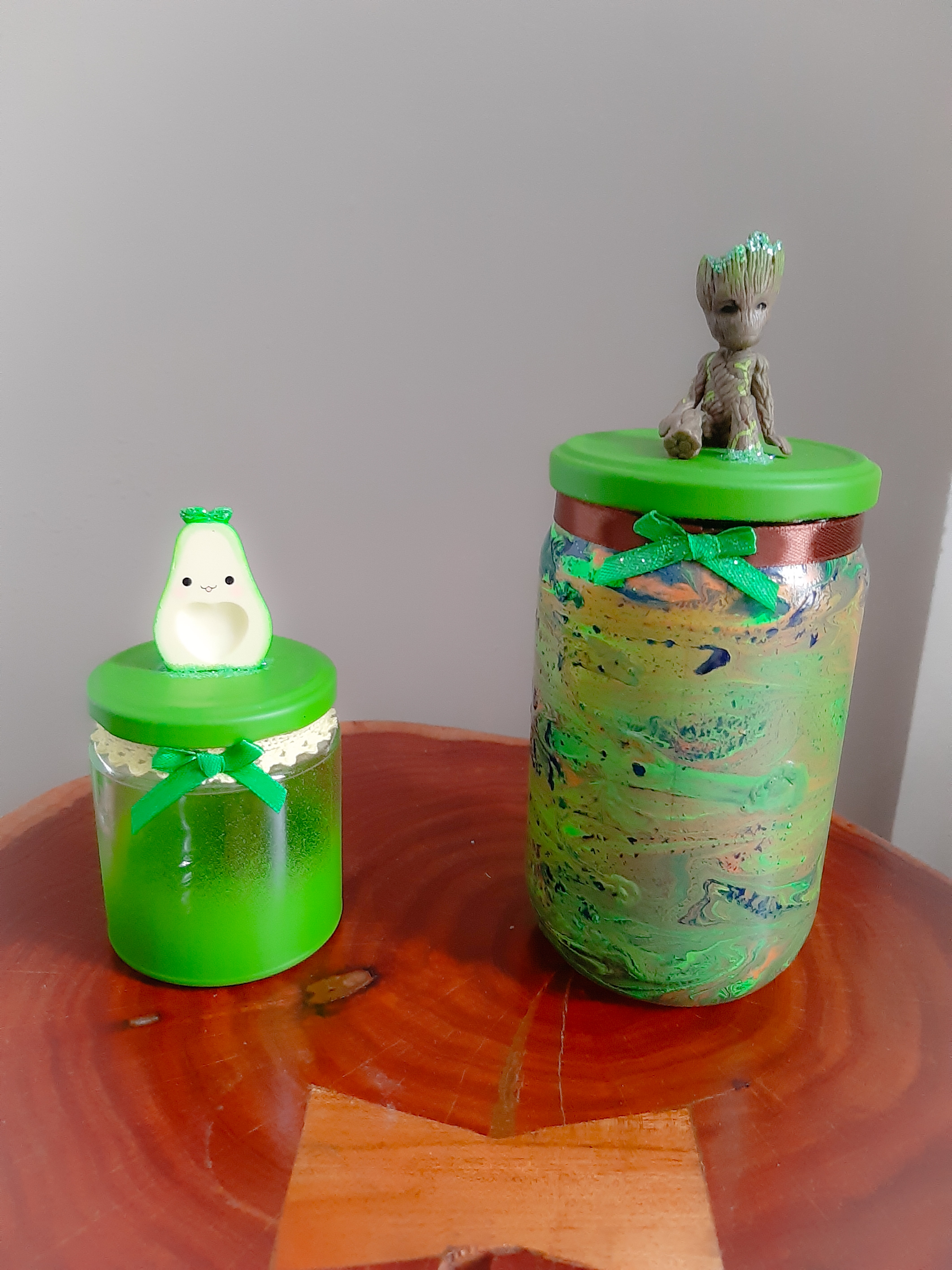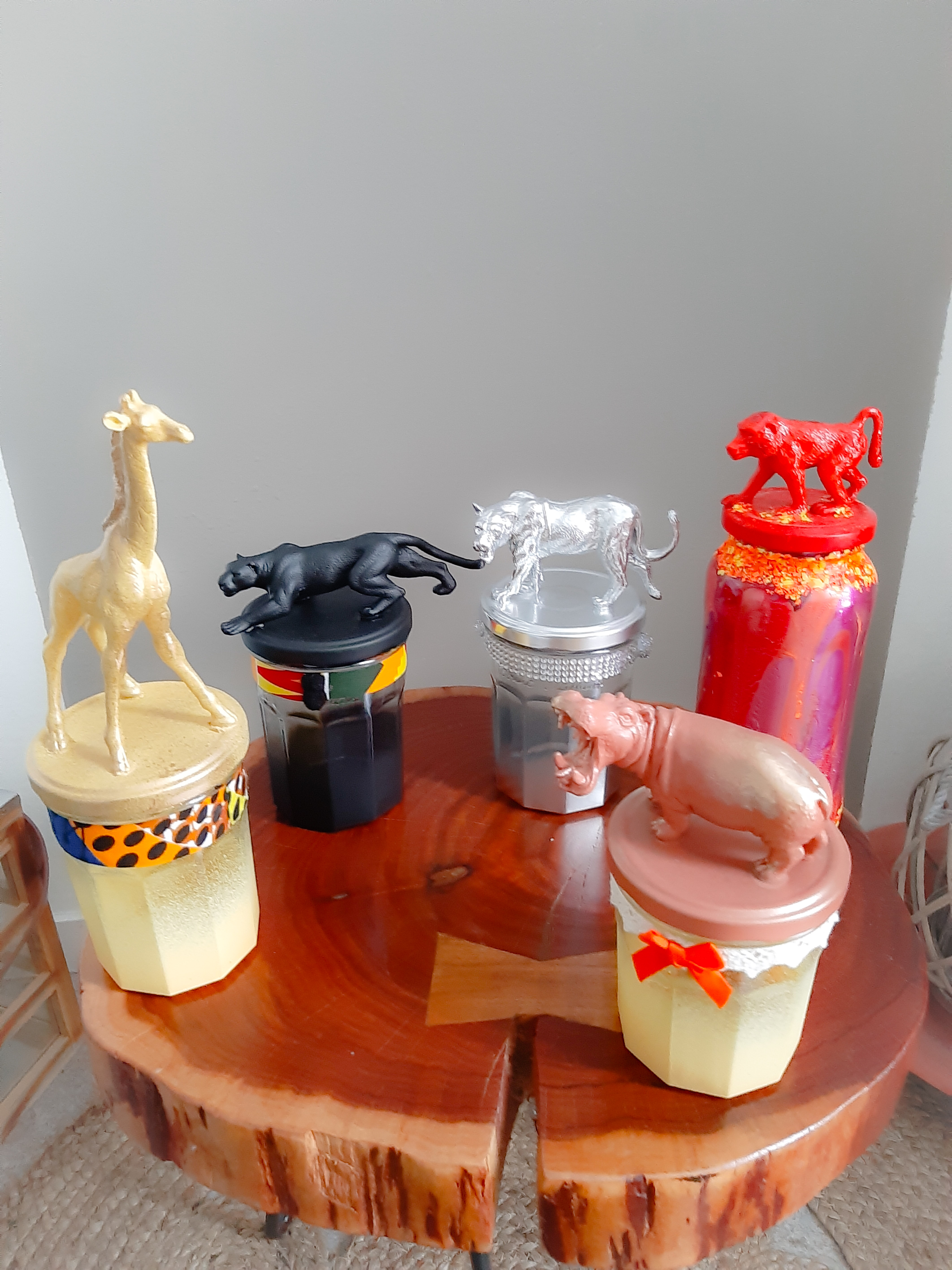 Stand N°32: Sur le stand d’Annabelle Walle ce sont des pots en verre qui eux sont décorés
